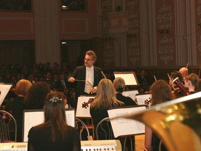Вчера, 10 февраля на сцене Дворца культуры "Сода" прозвучала новая программа коллектива республиканского Национального симфонического оркестра "Новогодний музыкальный коктейль". В зале собрались ценители классической музыки. Насладиться творчеством знаменитого коллектива прибыли министр культуры РБ Аскар Абдразаков и мэр г. Стерлитамака Алексей Изотов. В фойе Дворца культуры для гостей была организована выставка, посвященная истории ОАО "Сода". Министр отметил, что предприятие "Сода" вносит большой вклад в обеспечение духовного и материального благополучия жителей города, сохраняет и развивает объекты социальной сферы. Художественный руководитель и главный дирижер Национального симфонического оркестра РБ Тагир Камалов поблагодарил администрацию города, стерлитамакскую публику и руководство ОАО "Сода" и за помощь в организации концерта и предоставлении зала. В частности, он отметил: "Промышленный Стерлитамак является городом высокой культуры. У нас достаточно опыта и богатый репертуар, чтобы вызвать интерес к классической музыке не только у представителей интеллигенции, но и молодежи. В поисках своей публики мы подбирали не только новый репертуар, но и место организации концертов, и в этом нам помог Дворец культуры "Сода". Мы планируем чаще выступать перед жителями Стерлитамака, для этого нам нужна информационная поддержка и любовь слушателей. Надеюсь, концерты станут визитной карточкой Стерлитамака и ДК "Сода". По окончании концерта главный дирижер Т.Камалов вручил благодарственные письма за оказанную поддержку и вклад в дело приобщения к шедеврам музыкальной культуры в адрес ОАО "Сода", Дворца культуры "Сода", отдела культуры администрации Стерлитамака и газеты "Стерлитамакский рабочий". Следующее выступление Национального симфонического оркестра в Стерлитамаке пройдет 25 февраля. В программе прозвучат произведения С. Прокофьева "Концерт для скрипки с оркестром № 1" и "Скифская сюита", солистка - Айсылу Сайфуллина (г. Москва). В апреле этого года состоится концерт в рамках Международного фестиваля симфонической и хоровой музыки "Белая река".