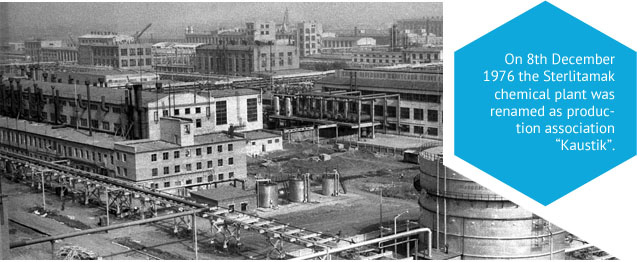 On 8th December 1976 the Sterlitamak chemical plant was renamed as production association “Kaustik”. Over this period production lines of chlorinated PVC, caustic soda according to the process of Oronzio de Nora, sodium hypochlorite shop, herbicide shop and organochlorine waste incineration plant were commissioned.
