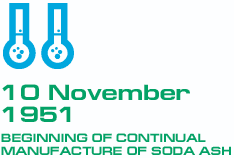 In August 1945 the government decided to expand soda ash and caustic soda production in the country. Construction and equipment installation for the first line of soda ash production shops were completed already in six years. From 10th November 1951 Sterlitamak soda plant begins continual manufacture of soda ash.