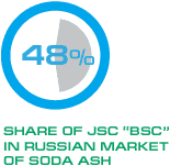 JSC “BSC” is a modern enterprise producing broad range of high-quality products: soda ash, refined sodium bicarbonate (baking soda), silica fillers, calcium chloride, PVC, soft cable compounds, caustic soda, hydrochloric acid, dichloroethane, corrosion inhibitors, chlorinated paraffin wax, polyethylenepolyamines, PVC films and a lot of other chemicals.
