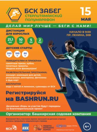 15 мая в Стерлитамаке пройдет полумарафон «БСК ЗАБЕГ»29.04.2022