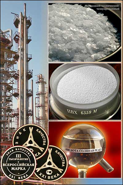 Кислота соляная и натр едкий технический чешуированный в ОАО «Каустик» производятся с момента пуска предприятия, они имеют сертификаты соответствия качества и в 2005 году уже становились победителями конкурсов «Лучшие товары Башкортостана» и «100 лучших товаров России». Поливинилхлорид суспензионный марки 6359 М, отличающийся относительной новизной, прошел добровольную сертификацию соответствия качества, и в 2004 году удостаивался Дипломов победителя конкурсов «Лучшие товары Башкортостана» и «100 лучших товаров России». Область применения данных продуктов достаточно широка, они стабильно поставляются многочисленным отечественным и зарубежным потребителям.