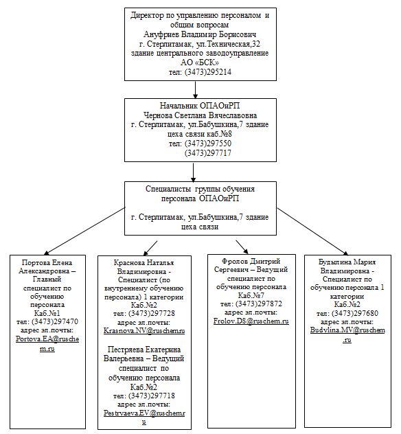 Бюро обучения персонала отдела подбора, адаптации, обучения и развития персонала является образовательным подразделением АО «БСК»
